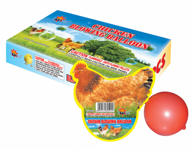 This item is genuinely unique to the World-Class line. A great addition to your novelty line that has never been seen before. This chick whistles, snaps, crackles and pops, out an egg that is. Balloon stays inflated far past the performance effect of the chicken. Kid tested, mother approved.